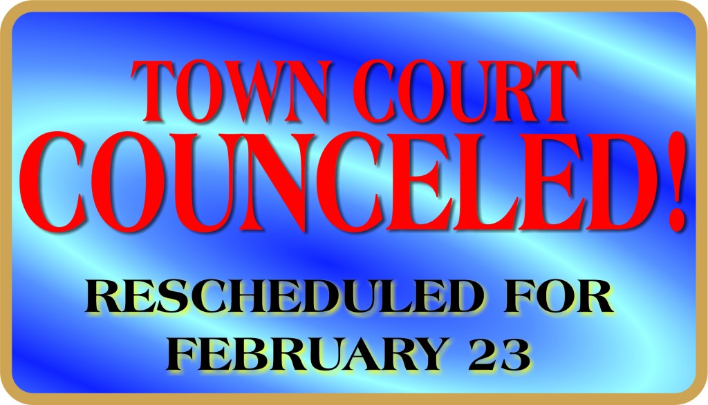 Town Court has been canceled due to the winter storm. It will be rescheduled for February 23, 2026.